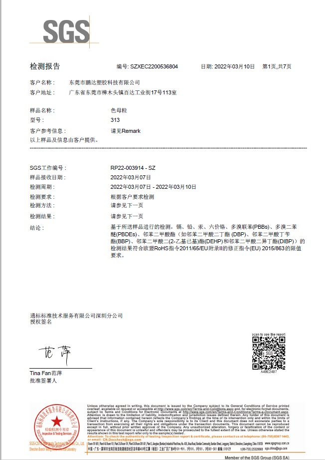 和鵬達(dá)塑膠科技有限公司合作很長一段時(shí)間了,他們的產(chǎn)品質(zhì)量好,服務(wù)到位,且原材料都通過SGS測(cè)試符合歐盟REACH,PaHS、ROHS及無鹵指令,備有美國FDA級(jí)食品接觸規(guī)格物料,和他們合作完全沒有后顧之憂!